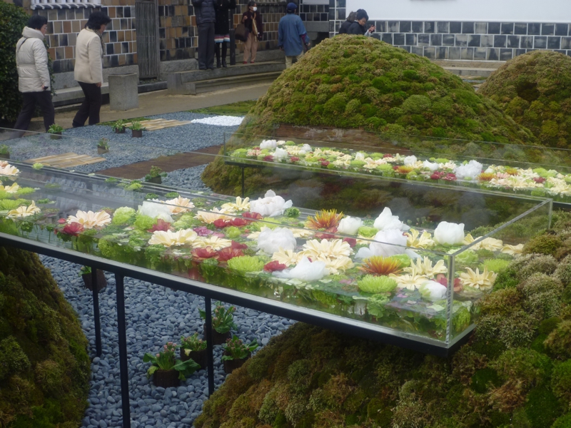 白壁の町倉敷に壮大なスケールの花の芸術。