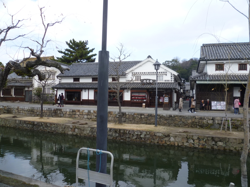 倉敷美観地区にある重要文化財の大原家本邸と旧別邸 有隣邸、そして倉敷川を挟んで向かいに建つ大原美術館。