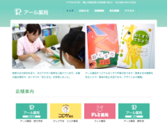コンセプトカラーを基調にしたカラーリングと、各店舗の情報が分かりやすいページになっています。新たな目標づくりで地域に密着した「かかりつけ薬局」をアピールしています。