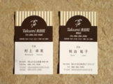 岡山市北区庭瀬にあるTakumi美容院さん。2012年にお店の一部リニューアルと、ロゴを作成しました。今回は、前回に追加し、名刺を作成しました。