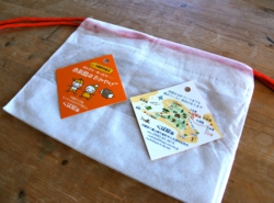 「小浜島のさっちゃん」シリーズのきんちゃくとタグを新たなデザインで作りました。